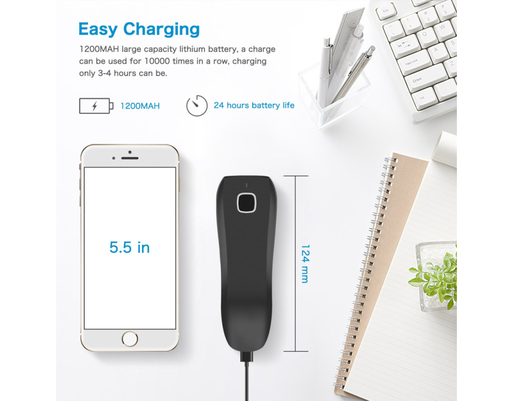Netum C740, з'єднання 3 в 1: сканер може працювати через 2.4G USB-ключ (типово), USB-кабель або bluetooth. Чудова швидкість декодування для читання 1D-штрихкодів. Сканер може декодувати 1D-штрихкоди з паперу або РК-екрана. Сканер можна запрограмувати, щоб мати функцію автоматичного сканування. Сканер може бути запрограмований, щоб мати префікс або суфікс. Сканер C740 декодує безліч типів 1D-штрихкодів із дуже швидкою швидкістю, включно з CODE128, UPC/EAN Add on 2 або 5. Цей бездротовий і bluetooth-сканер має флешпам'ять, може зберігати приблизно 2000 Code128. Може під'єднуватися до різних пристроїв, як-от ноутбуки, планшети, телефони та системи POS. Сумісність з Windows, Mac OS, Linux, Android, IOS тощо. |
