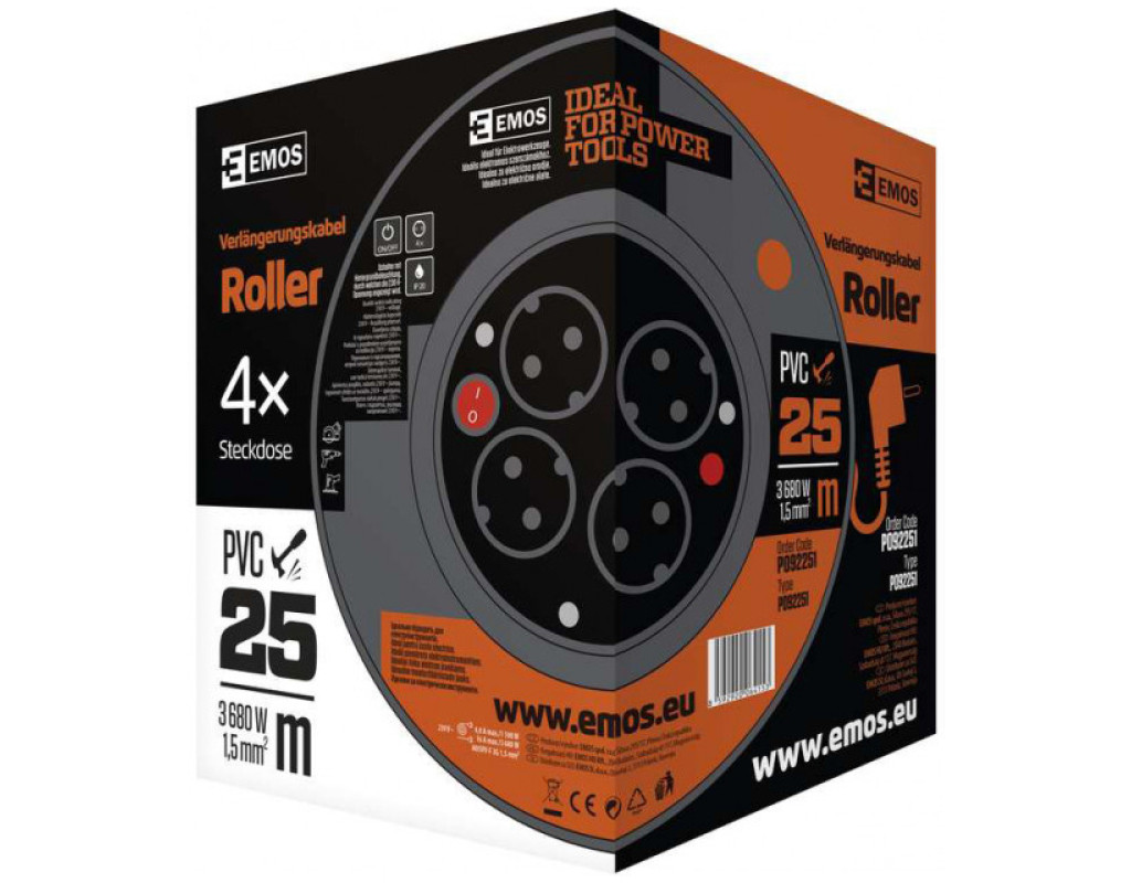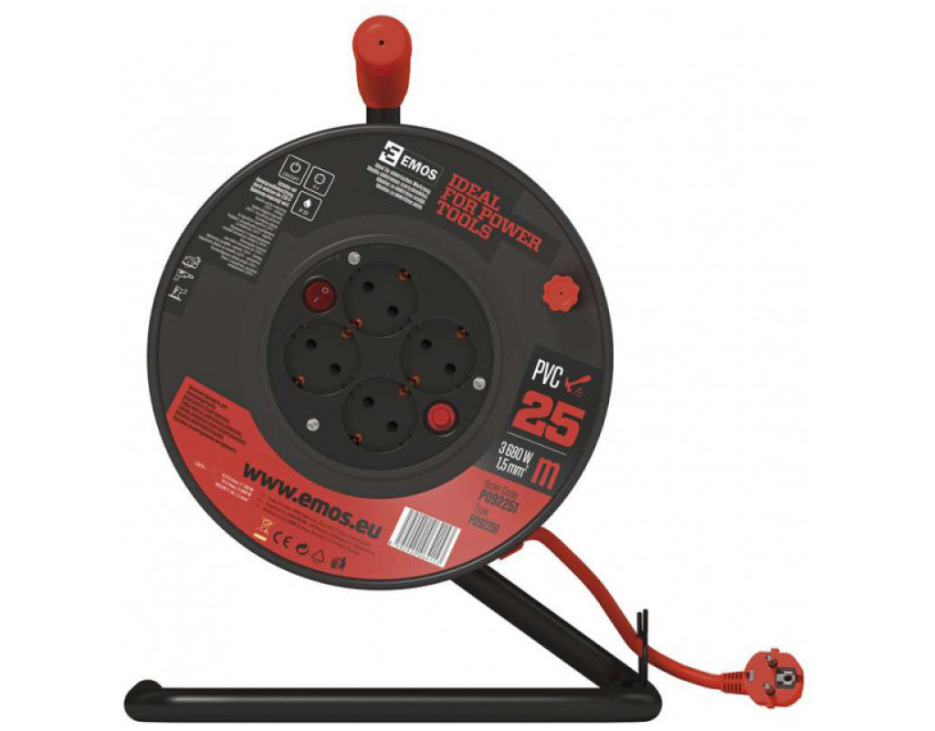 Подовжувач на котушці P092251 від чеського виробника Emos. Має перетин кабелю 1,5 мм що обумовлює підвищену стійкість до навантажень від використання приладів з великим енергоспоживанням. Основні параметри: - Довжина кабелю: - 25 м.