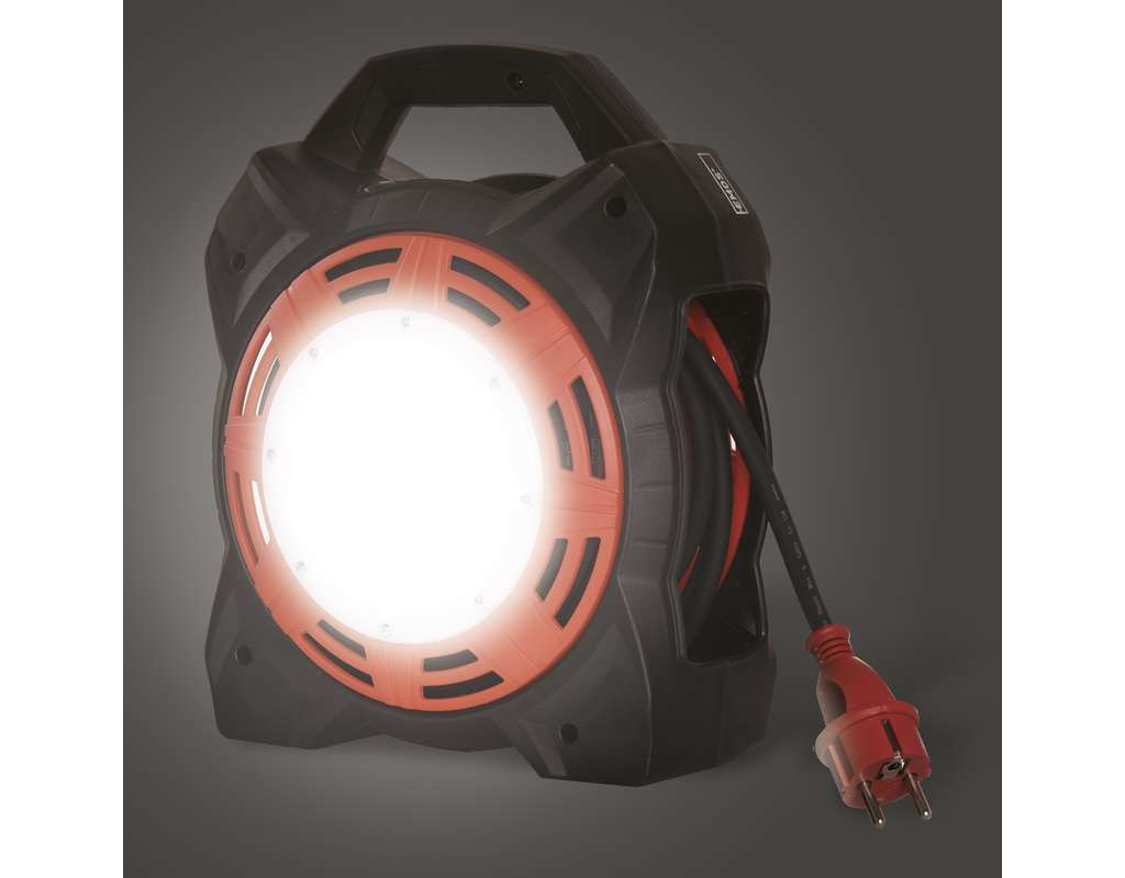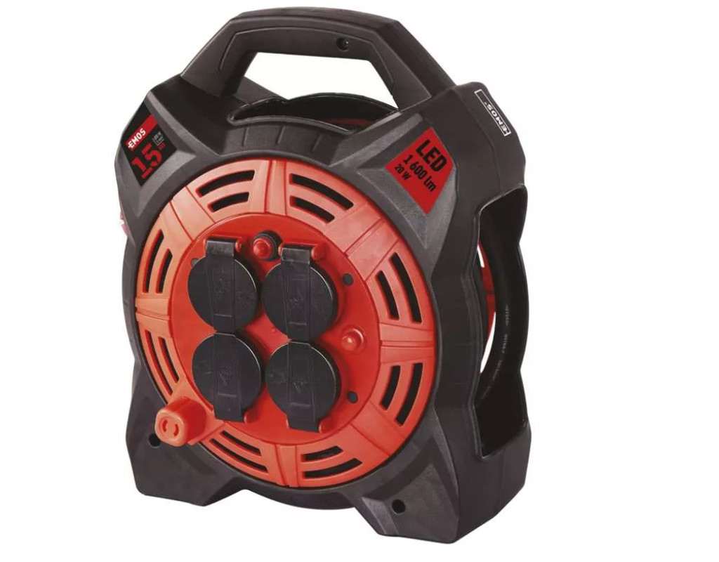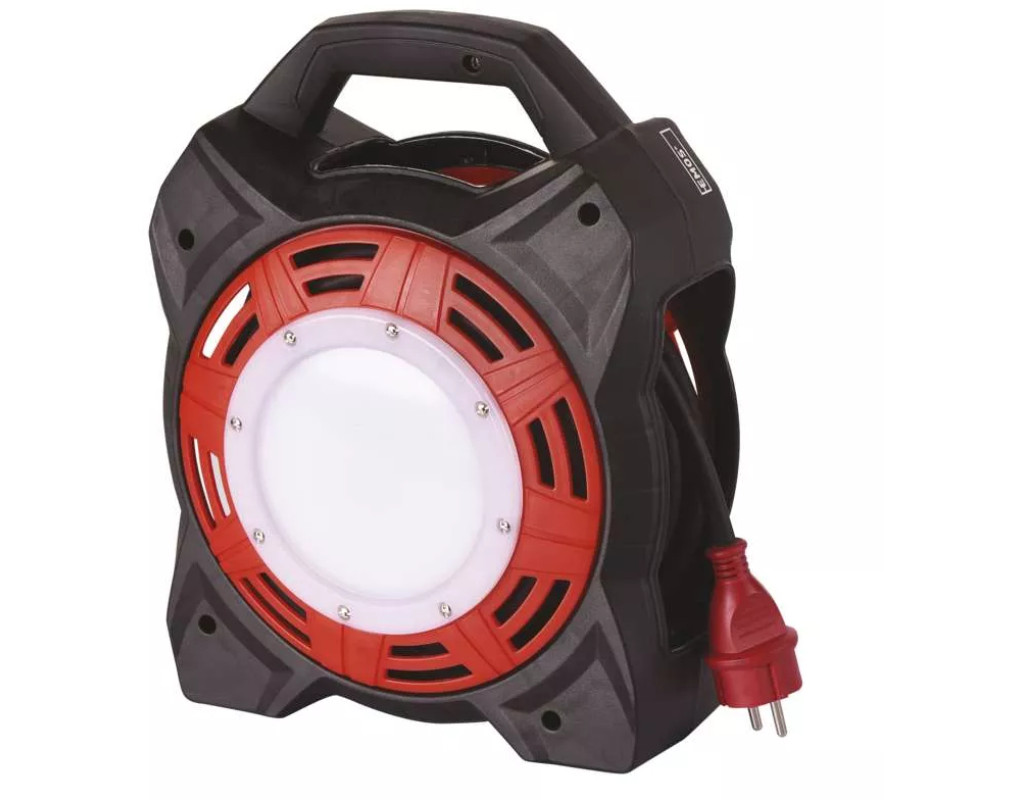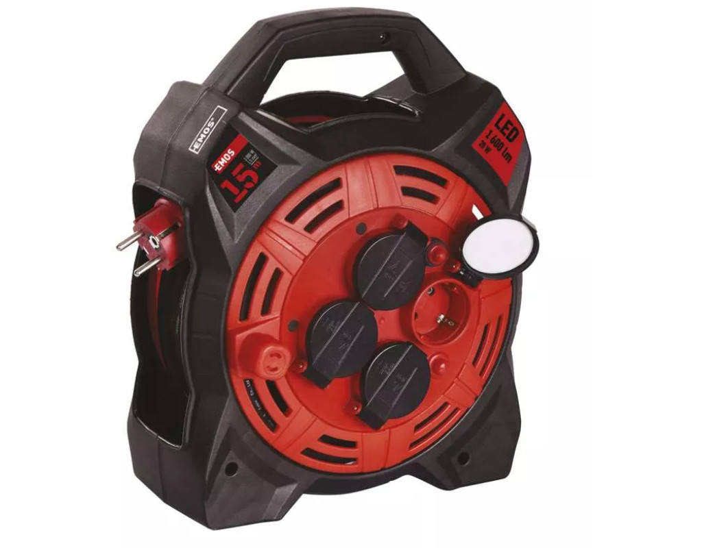 Унікальна Новинка Котушка-подовжувач з прожектором 20W від чеських розробників компанії EMOS. На кожній розетці встановлена заглушка від попадання пилу і сміття. Провід вироби виготовлений зі спеціальної маслостойкой гуми, що ідеально підходить для використання в СТО і гаражних приміщеннях. LED прожектор активується клавішею на корпусі. Основні параметри: