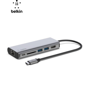 Концентратор Belkin USB-C 7-in-1 2xUSB 3.0 + USB-C + PD + HDMI 2.0 4K60Hz + SD/TF gray (AVC023HQSGY)
