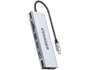 Концентратор Essager USB-C 8-in-1 HDMI + USB 3.2 + USB-C + SD/TF + M.2 PCIe/NVMe/SATA SSD support gray (EHB08-QK0G-Z)