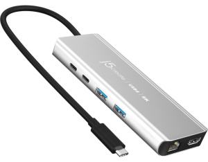 Концентратор J5create USB-С 6-in-1 2xUSB 3.2 + USB-C PD 100W + USB-C + HDMI 8K + RJ45 2.5Gbps aluminum (JCD403-N)