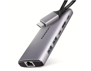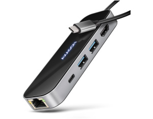 Концентратор AXAGON USB-C to 2xUSB-A + 1xUSB-C + HDMI + RJ45 + PD100W 0.2m grey (HMC-6GLN)