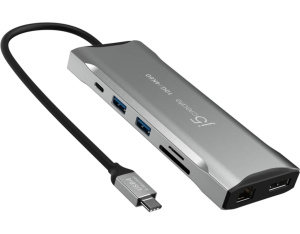 Концентратор J5create USB-C 9-in-1 2xUSB 3.2 + 2xUSB-C PD + 2xHDMI 4K + DisplayPort + SD/TF + RJ45 1000Mbps gray (JCD397-N)