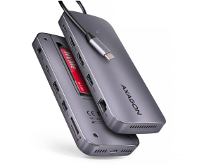 Концентратор AXAGON USB-C 12-in-1 HDMI + DisplayPort + RJ45 1000Mbps + PD100W aluminum gray (HMC-12GM2)