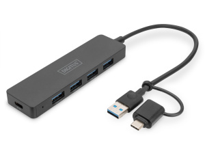 Концентратор Digitus USB-C + USB-A to 4xUSB-A 0.2m black (DA-70235)