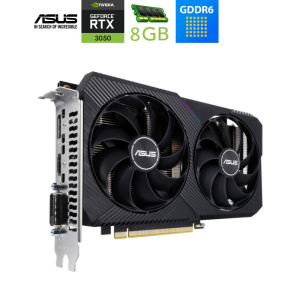 Видеокарта ASUS RTX 3050 8Gb DUAL OC (DUAL-RTX 3050-O8G-V2) PCI-Express x16 4.0, 8 ГБ, GDDR6, 128 Bit, Boost - 1852 MHz, 1 x HDMI 2.1, 3 x DisplayPort 1.4a, 8 pin, 200 х 123 х 38 мм