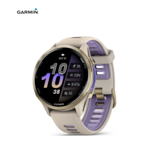 Смарт-годинник Garmin Forerunner 970 French Gray Soft Gold Titanium with French Gray/Translucent Indigo Silicone with Soft Gold Buckle (010-02969-62)