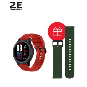 Смарт-часы 2E Motion GT2 47mm Black-red + ремінець зелений (2E-CWW21BKRD-WS)