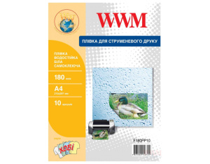 Пленка для печати WWM A4, White waterproof, 180мкм, 10ст, самоклейка (F180PP10)