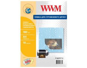 Пленка для печати WWM A4, 180мкм, 10л, for inkjet, waterproof translucent self-adh (F180PET10)