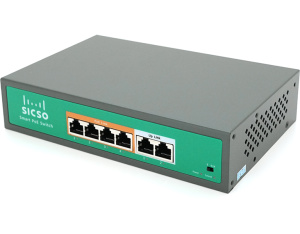 Комутатор POE SICSO 48V з 4 портами POE 100Мбіт + 2порт Ethernet (UP-Link) 100Мбіт, з посил. сигн. до 250м, корпус-метал, Silver, БП вбудований, Q30