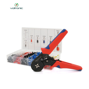 Крімпер HCS8 6-4 для обтиску кабельного накінечника, red + набір кабельних наконечників (E0508-360шт, E1508-180шт, E2508-150шт, E1008-240шт, E4009-90шт)