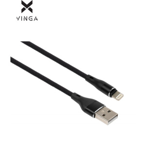 Дата кабель USB 2.0 AM to Lightning 1.0m cylindric nylon back Vinga (VCPDCLCANB1BK)