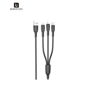 Дата кабель USB 2.0 AM to Lightning + Micro 5P + USB-C 1.0m 2A PVC BX71 black BOROFONE (6974443384543)