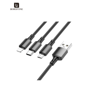 Дата кабель USB 2.0 AM to Lightning + Micro 5P + USB-C 1.0m black BOROFONE (6974443384666)