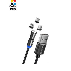 Дата кабель USB 2.0 AM to Lightning + Micro 5P + USB-C 1.0m Magnetic Ro ColorWay (CW-CBUU037-BK)