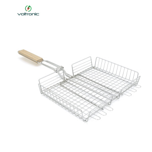 Решiтка-гриль з високим бортом, 31х25х5cm, нержавіюча сталь, дерев'яна ручка