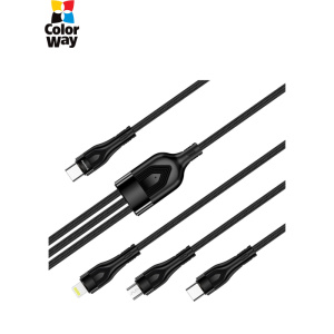 Дата кабель USB-C to Lightning + Micro 5P + USB-C 1.2m 3.0A (PD60W data) Black ColorWay (CW-CBPDU3060-BK)