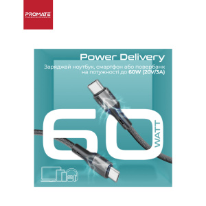 Кабель Promate USB Type-C - USB Type-C (M/M), 3A, 60W, 2 м, Black (ecoline-cc200.black)