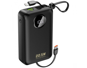 УМБ Joyroom 10000mAh 22,5W PD,QC, USB-A, USB-C In/Out with built-in USB-C cable Black