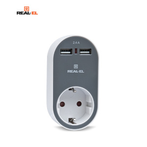 Мережевий зарядний USB-пристрій з розеткою REAL-EL CS-20, білий-сірий