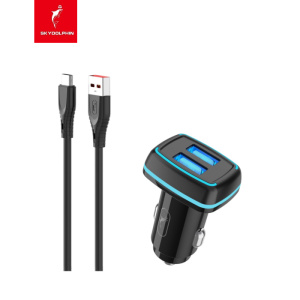 Автомобільний зарядний пристрій SkyDolphin SZ18V (2USB, 3.4A) Black (AZP-000101) + кабель microUSB