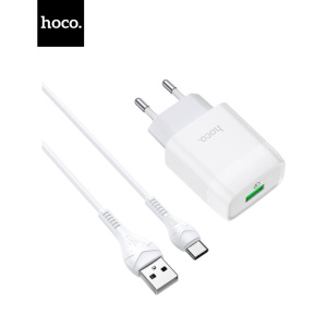 Зарядное устройство HOCO C72Q Glorious USB QC3.0 + cable USB to USB-C 18W White (6931474732552)