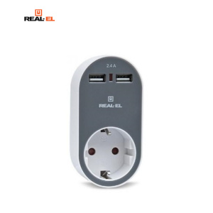 Зарядное устройство REAL-EL USB-устройств + розетка (CS-20)