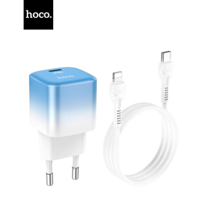 Зарядное устройство HOCO C101A USB-C PD20W + cable USB-C to Lightning Ice Blue (6931474769381)