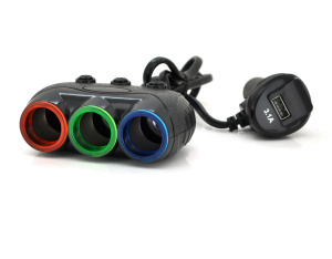 АЗУ розгалужувач + вольтметр Olesson 1633, 12V-3 * 12V + USB, Black, Blister