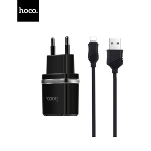 Мережевий зарядний пристрій Hoco C12 Smart 2.4A 2USB Black (S23146) + кабель Lightning