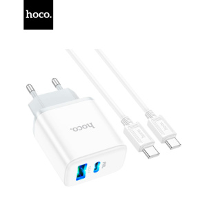 Зарядное устройство HOCO C105A Stage 1xUSB-C PD20W + 1xUSB QC3.0 + cable USB-C to USB-C White (6931474782922)