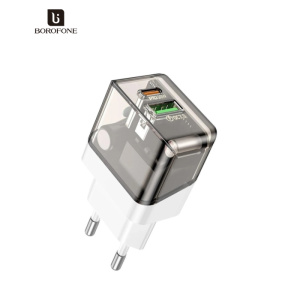 Зарядное устройство BOROFONE BA80A Scenery 1xUSB-C PD20W + 1xUSB QC3.0 Transparent Black (6941991105159)