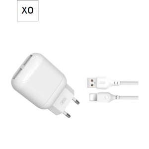Зарядное устройство XO 2xUSB 2.4A + cable USB to Lightning white (L78-L-WH)
