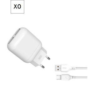 Зарядное устройство XO 2xUSB 2.4A + cable USB to Micro 5P white (L78-M-WH)