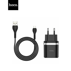 Мережевий зарядний пристрій Hoco C12Q (1USB, 3А) QC3.0 Black (S23991) + кабель Type-C