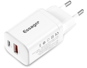 Зарядное устройство Essager 1xUSB + 1xUSB-C PD30W white (ECTPQS-ZTB02)
