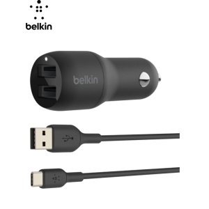 Зарядное устройство Belkin Car Charger (24W) Dual USB-A, USB-A - USB-C, 1m, black (CCE001BT1MBK)