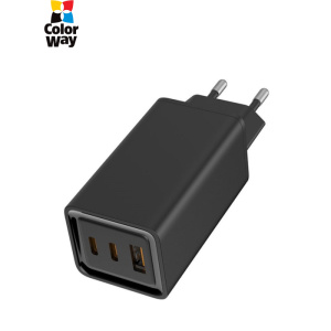 Зарядное устройство ColorWay GaN3 Pro Power Delivery (USB-A + 2 USB TYPE-C) (65W) (CW-CHS039PD-BK)