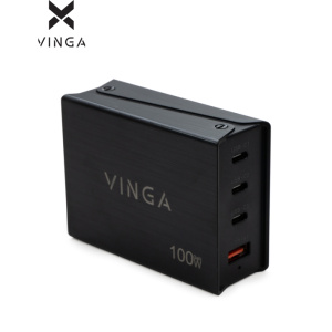 Зарядное устройство Vinga GaN 100W PD+QC 3C1A ports 1.2m Wired Charger (VCPCH100CB)