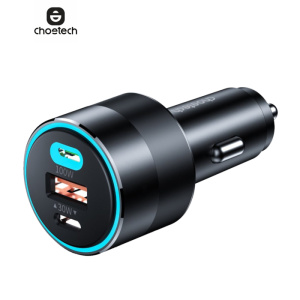 Зарядное устройство Choetech car 2хUSB-C+USB-A 130W QC3.0/PD/PPS black (TC0011-BK)