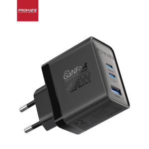 Зарядное устройство Promate powerport-45 2xUSB-C PD + USB-A QC 45W Black (powerport-45.black)