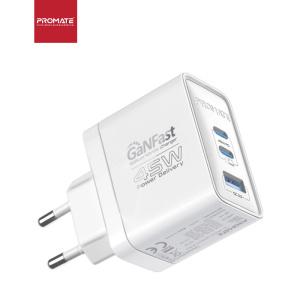 Зарядное устройство Promate powerport-45 2xUSB-C PD + USB-A QC 45W White (powerport-45.white)