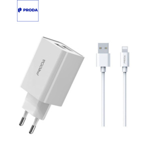 Зарядное устройство Proda PD-A28i 2хUSB 2.4A + USB Ligthtning 1.0m (PD-A28i-WH)