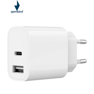 Зарядное устройство Gembird 1xUSB-A+1xUSB-C 5V/2.4A (12W) white (TA-UC-2AC12-01)