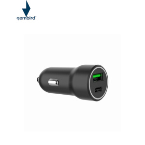 Зарядное устройство Gembird 1xUSB-A (18W QC3.0) + 1xUSB-C (20W PD) black (TA-UC-A2PDQC20-CAR-01)