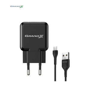 Зарядное устройство Grand-X CH-03T USB 5V 2,1A Black + cable USB -> Type C, Cu, 4A, TPE (CH-03T)