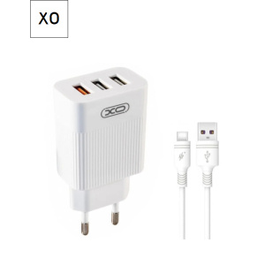 Зарядное устройство XO QC 3.0 L72 30W (18W/1USB + 2.4A/2 USB) + cable Lightning White (XO-L72i-WH)