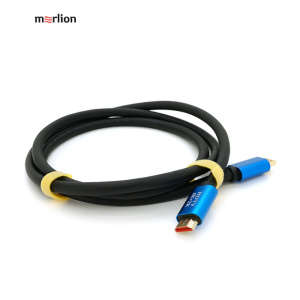 Кабель Merlion HDMI-HDMI 4Kx2K Ultra HD, 1.5m, v2,0, круглий Black, коннектор Blue, Blister-box, Q100